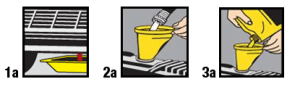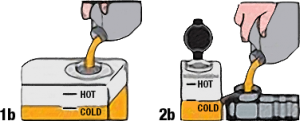 FILL with Prestone® Concentrate and distilled water to achieve the freeze-up/boil-over protection indicated on the back of the bottle (ILLUS. 3a).